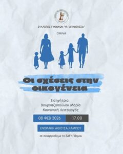 Σύλλογος Γυναικών “Η Πατινιώτισα” : Ομιλία, οι σχέσεις στην οικογένεια Πατμιακά Χρονικά 08/02/2026 Πολιτισμός