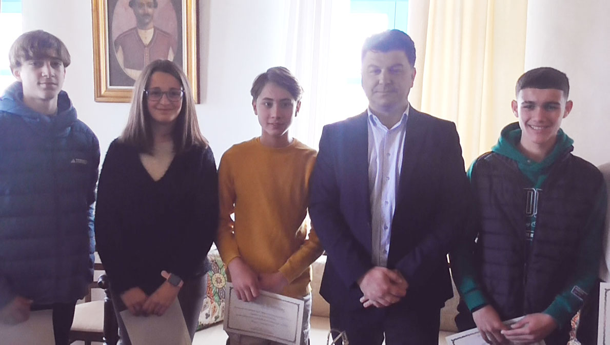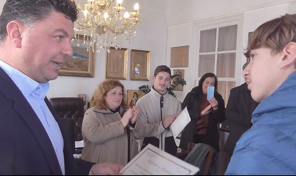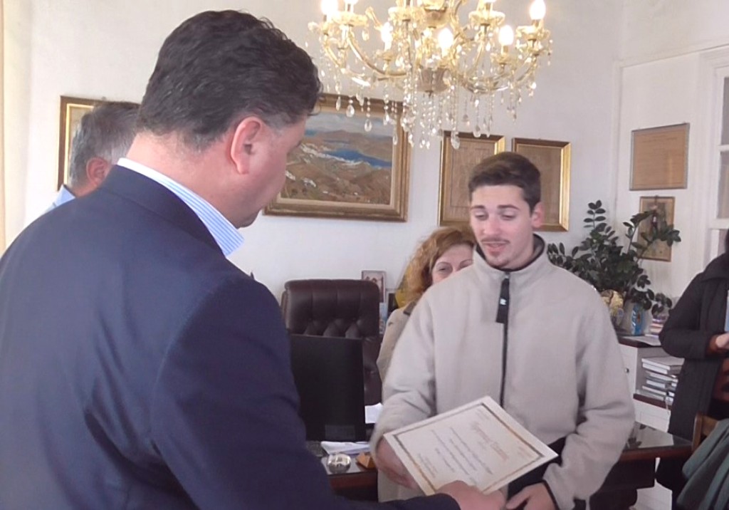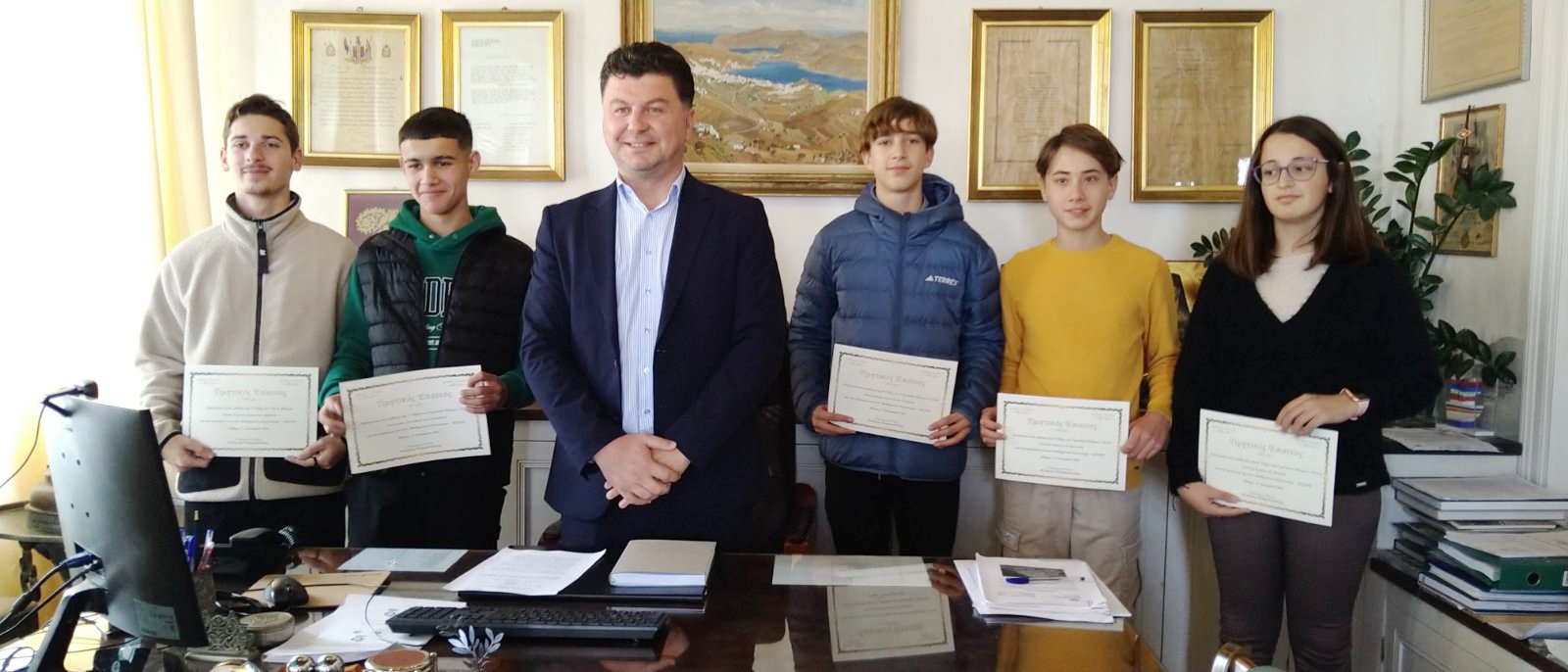 Η νέα δημοτική αρχή τίμησε με έπαινο τους 5 μαθητές του Γυμνασίου και του Λυκείου Πάτμου που διακρίθηκαν στον Διαγωνισμό ΘΑΛΗΣ της μαθηματικής εταιρείας την Δευτέρα 15 Ιανουαρίου 13:30 στο Δημοτικό κατάστημα.