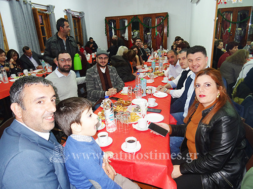 Η αίθουσα του συλλόγου ήταν κατάμεστη από μικρούς και μεγάλους οι οποίοι απόλαυσαν τα ζεστά ροφήματα με πλούσια εδέσματα, συντροφιά με μουσική από τον dj Παναγιώτη Βιολέντη .