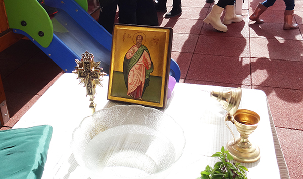 Και για την πρώτη αυτή μέρα τελέστηκε ο καθιερωμένος αγιασμός, με την παρουσία του δημάρχου κ. Ελευθέριου Πέντε, του αντιδημάρχου και υπεύθυνου για την λειτουργία του σταθμού κ. Νικόλαου Κουτούζου, του αντιδημάρχου κ. Μιχάλη Κωνσταντά, των γονέων, των νηπίων και του προσωπικού του βρεφονηπιακού σταθμού .