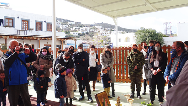 Στην τέλεση του αγιασμού συμμετείχε και ο καθηγητής πρ. σχολάρχης της Πατμιάδος και π. δήμαρχος κ. Ματθαίος Μελιανός .
