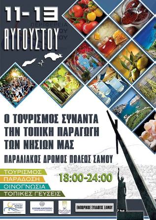 Για τρεις ημέρες (11, 12 και 13 Αυγούστου 2017) οι εκλεκτοί οίνοι του Ενιαίου Οινοποιητικού Αγροτικού Συνεταιρισμού Σάμου θα προβάλλονται σε ειδικά διαμορφωμένο περίπτερο, αλλά και στην κεντρική σκηνή μιας φεστιβαλικής ανοιχτής διοργάνωσης που σχεδίασε και υλοποιεί η Περιφέρεια Βορείου Αιγαίου-ΠΕ Σάμου σε συνεργασία με το Επιμελητήριο Σάμου και τον Εμπορικό Σύλλογο Σάμου. Φιλοδοξεί να προκαλέσει το έντονο ενδιαφέρον όχι μόνο των επισκεπτών και των μόνιμων κατοίκων, αλλά και tour operators και destination managers από Ευρωπαϊκούς προορισμούς αλλά και από τη γειτονική Τουρκία, τοπικών φορέων και διακεκριμένων προσωπικοτήτων από διάφορους χώρους που θα έρθουν για το σκοπό αυτό στη Σάμο.