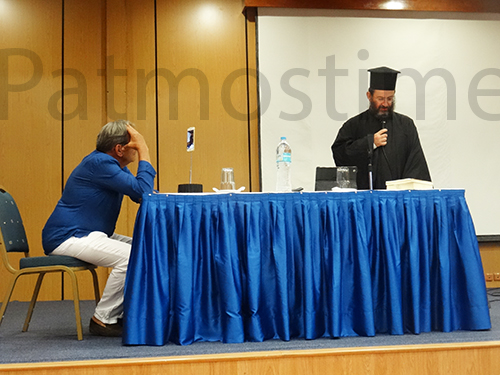 Ο κ. Καυκαλίδης έδωσε αρχικά το λόγο στον αρχιμ. Σεραφείμ Κοτσάνη ο οποίος ως εκπρόσωπος του καθηγουμένου Πάτμου χαιρέτησε την εκδήλωση και την πρωτοβουλία του κ. Καυκαλίδη για την ομιλία γύρω από τον Πάτμιο Εμμανουήλ Ξάνθο.