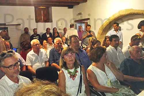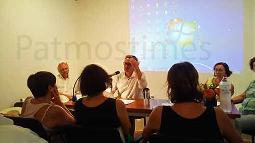 Να παρέμβη ζήτησε ο πρόεδρος του συλλόγου απανταχού Πατμίων Ξάνθος ο Φιλικός, κ. Θεολόγος Μαυρουδής, όταν ο μηχανικός κ. Κωνσταντινίδης ανέβηκε στο βήμα της αίθουσας του Αρχοντικού Νικολαῒδη για να μιλήσει σύμφωνα με το πρόγραμμα.