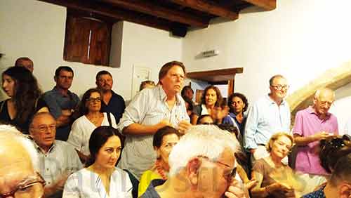 Κάποιος κάλεσε όσους διαμαρτύρονται και δεν θέλουν να τον ακούσουν να αποχωρήσουν. Ο κ. Μαυρουδής όμως είπε «όχι να καθήσουμε». Επενέβησαν και άλλοι στη συζήτηση λέγοντας στον κ. Μαυρουδή ότι πρέπει να τον ακούσουμε.
