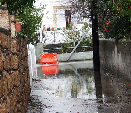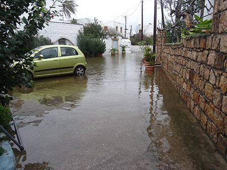 Οι σημερινές έντονες βροχοπτώσεις έχουν δημιουργήσει πλημμύρες στο νησί μας κυρίως στο λιμάνι , στην Αλμύρα και τους γύρω δρόμους. Είναι μια κατάσταση που παρατηρείται με την πρώτη έντονη βροχή. Φέτος δε που οι βροχές είναι μόνιμο φαινόμενο το κακό παράγινε. Εκτός από το λιμάνι ( στο fb κυκλοφορούν συγκλονιστικά βίντεο από την πλημμύρα στο λιμάνι), πλημμύρισαν σπίτια στην περιοχή της Αλμύρας. Σε πολλές περιπτώσεις οι διαμένοντες, δεν μπορούν να βγουν από τα σπίτια τους και σε άλλες με σκούπες φαράσια και κουβάδες, προσπαθούν να βγάλουν τα νερά από τις αυλές και τα σπίτια τους.