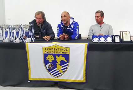 Χαιρετισμό και ευχαριστήρια απηύθυνε ο πρόεδρος κ. Ευαγγέλου στον διευθυντή αγώνα και στον αγωνάρχη Μίλησε επίσης ο αγωνάρχης για το άθλημα και την παγκόσμια εξέλιξη του και ο δήμαρχος Πάτμου καλωσορίζοντας την νέα δράση την οποία ήδη επιδότησε ο Δήμος Πάτμου με πολύ μεγάλη χαρά. Χαιρετισμό απηύθυνε επίσης και ο έπαρχος Καλύμνου. Τιμητικά μετάλλια απενεμήθηκαν στην διοίκηση πεδίου, στον κ.δήμαρχο, στον κ. έπαρχο, στον διευθυντή αγώνα και στον αγωνάρχη.