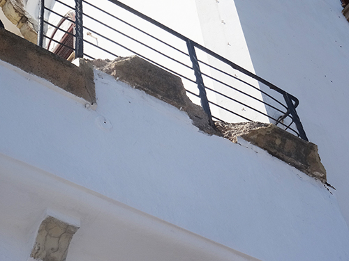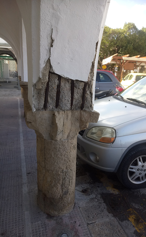 -των γερασμένων οπλισμένων σκυροδεμάτων του φέροντα οργανισμού του, με οξειδώσεις των οπλισμών και αποσάθρωση των σκυροδεμάτων,