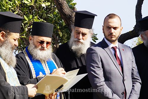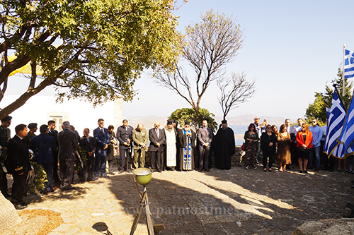 Στη συνέχεια όλοι μαζί πήγαν στο μνημείο του Πάτμιου αγωνιστή και πρωτεργάτη της Φιλικής Εταιρείας Εμμανουήλ Ξάνθου. Τέλεσαν επιμνημόσυνη δέηση και οι κ.κ. Δήμαρχος, Διοικητής του ΤΕ και Λιμενάρχης Πάτμου.