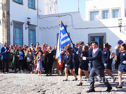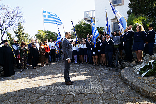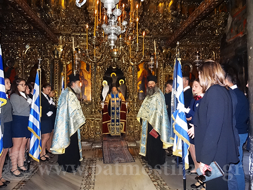 Από την Ιερά Μονή Αγίου Ιωάννου του Θεολόγου ξεκίνησαν την Δευτέρα 28 Οκτωβρίου 2019, οι εκδηλώσεις για τη γιορτή της Επετείου της 28ης Οκτωβρίου 1940, τιμή στο ΟΧΙ που είπε η Ελλάδα στον Μουσολίνι με τη Δοξολογία που τέλεσε ο καθηγούμενος και την οποία παρακολούθησαν οι μαθητές, οι μαθήτριες με τους δασκάλους και καθηγητές τους από όλα τα σχολεία της Πάτμου.