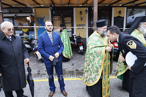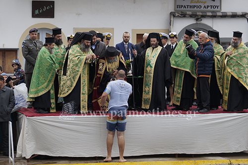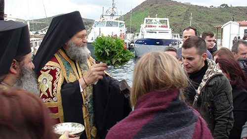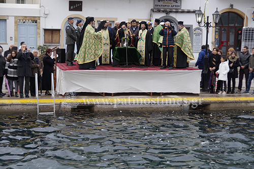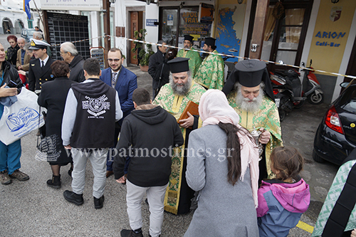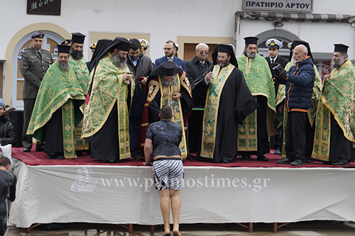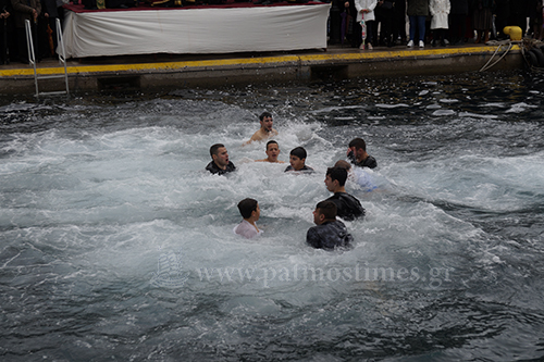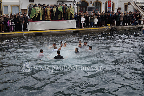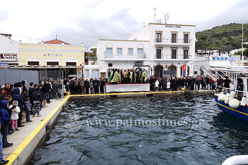 Παρά τη χαμηλή θερμοκρασία και τον μουντό ουρανό σε αναμονή της καταιγίδας, ο αγιασμός των υδάτων τελέστηκε με λαμπρότητα στο λιμάνι της Πάτμου. Οι συμπατριώτες μας τίμησαν με την παρουσία τους τα Θεοφάνεια. Τον Σταυρό έριξε ο καθηγούμενος αρχιμ. Κύριλλος Πέντες , ενώ σφύριζαν τα σκάφη του λιμανιού.