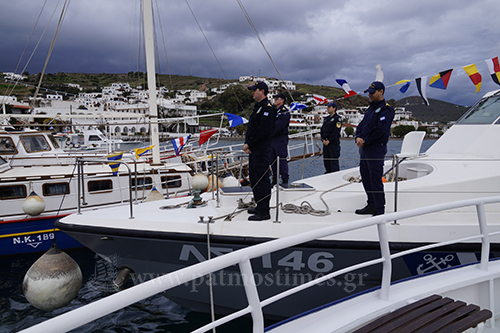 Ο Σταυρός χάθηκε στα κρύα νερά αλλά ευτυχώς για λίγο. Για πρώτη φορά το σκάφος του λιμενικού παρεβρίσκετο στο χώρο της τελετής σημαιοστολισμένο.