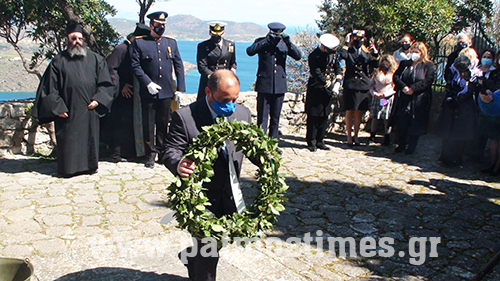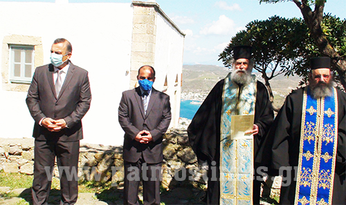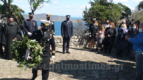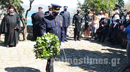 Παρουσία των τοπικών αρχών , Διοικητή Τ.Ε., Διοικητή Α.Τ. Πάτμου, Λιμενάρχη και του κυβερνήτη της κανονιοφόρου ΑΗΤΗΤΟΣ που ήρθε στο νησί μας για να αποδώσει τιμές, των τριών αντιδημάρχων Μιχαήλ Κωνσταντά, ΕιρήνηςΚανιαύ και Ελευθερίου Κοκκώνη αλλά και του δημοτικού συμβούλου της αντιπολίτευσης Σημαντήρη Ιωάννη πραγματοποιήθηκε πάλι, απουσία κόσμου, η ετήσια δοξολογία και η κατάθεση στεφανιών στο μνημείο του Ξάνθου.