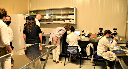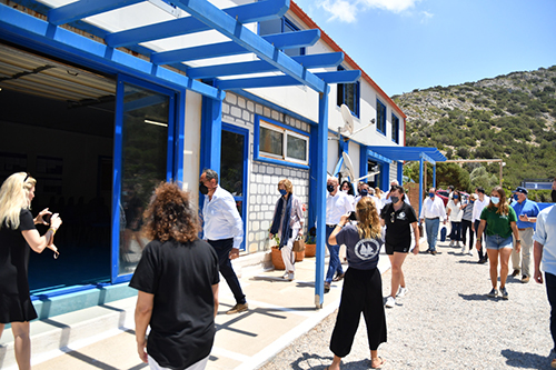 Παρουσία του Δημάρχου Λειψών, κ. Φώτη Μάγγου ξεναγήθηκαν στη συνέχεια στο υπό δημιουργία Καταφύγιο Θαλάσσιας Ζωής Αιγαίου, το οποίο ήδη λειτουργεί ως ερευνητικό κέντρο. Γνώρισαν την πολυεθνική ομάδα ερευνητών και το προσωπικό του Ινστιτούτου και επισκέφθηκαν τα εργαστηρια μικροπλαστικής ρύπανσης και το υπό-δημιουργία κτηνιατρείο, ενώ παρακολούθησαν μέρος της διαδικασίας επαναφύτευσης των θαλάσσιων λιβαδιών Ποσειδωνίας που πραγματοποιούνταν από μέλη της ερευνητικής ομάδας του Ινστιτούτου Αρχιπέλαγος.