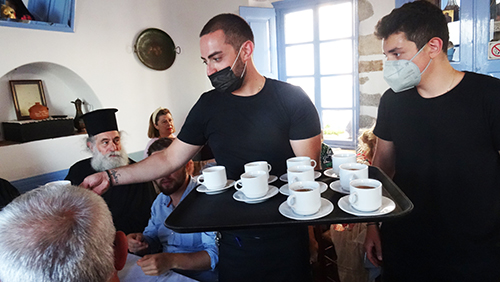 Μετά το πέρας του εσπερινού παρατέθηκε δεξίωση με καφέ και λιχουδιές στο εστιατόριο ΠΑΝΘΕΟΝ του Γιάγκου Σημαντήρη.
