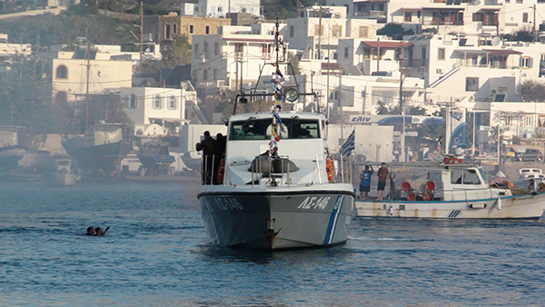 Ρίχτηκε ο Σταυρός στη θάλασσα από τον π. Σεραφείμ Κοτσάνη , έπεσαν στη θάλασσα άνδρες του λιμενικού και έπιασαν το Σταυρό, ενώ τα επιπλέοντα σκάφη κορνάριζαν και έριχναν πυροτεχνήματα και φωτοβολίδες πορείας.