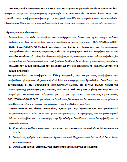 Α)με την εφαρμογή Μηχανογραφικού Δελτίου Σχολικής Μονάδας για την υποβολή Μηχανογραφικού Δελτίου (Μ.Δ.) και Παράλληλου Μηχανογραφικού Δελτίου (Π.Μ.Δ).