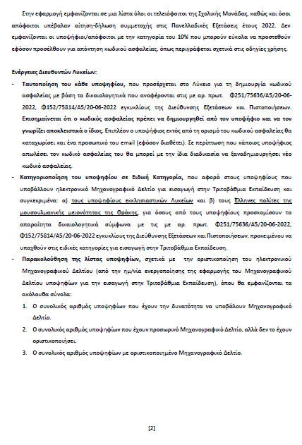 Όλοι οι ενδιαφερόμενοι θα πρέπει να προσέλθουν στο Λύκειό τους, για να αποκτήσουν προσωπικό