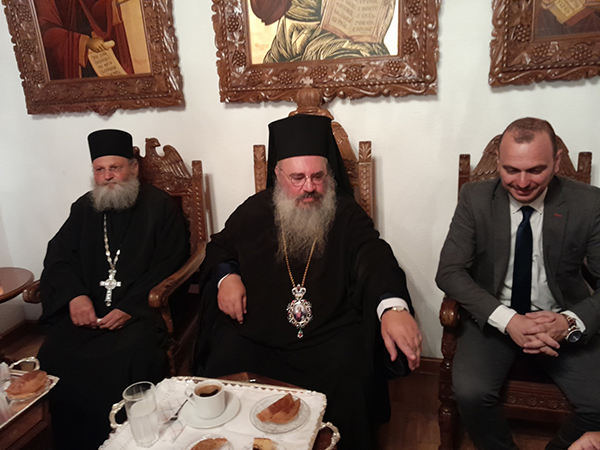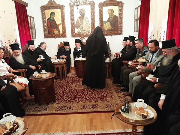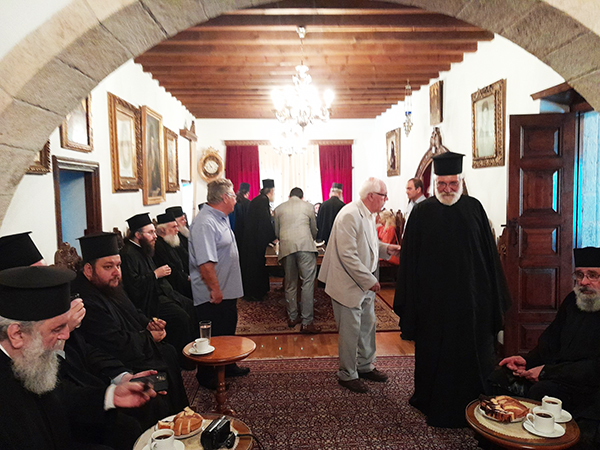 Ανταποδίδοντας την αγάπη του ηγουμένου του πρόσφερε μια εικόνα της Αγίας Παρασκευής και μετά το τέλος της δοξολογίας όλοι μαζί μετέβησαν στο ηγουμενείο και δεξιώθηκαν με καφέ, την παραδοσιακή τυρόπιττα Πάτμου και διάφορα γλυκίσματα, ενώ ο ηγούμενος αναπόλησαν τις στιγμές που μαζί μπήκαν στη μονή , μαζί χειροτονήθηκαν, τα κελιά τους ήταν πολύ κοντά κ.ά.