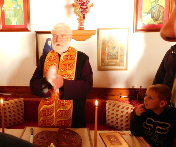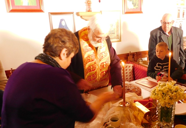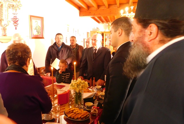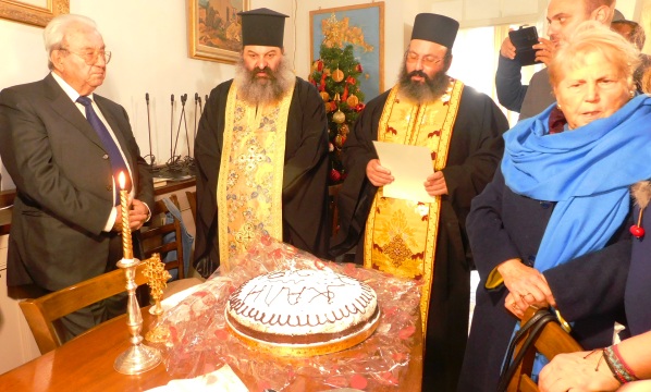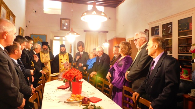 Μοιράστηκε στο εκκλησίασμα από τον π. Γεώργιο Κανιαρό φάκελος με δώρο και ημερολόγιο τσέπης. Ακολούθησε το κόψιμο της βασιλόπιτας του ναού παρουσία του δημάρχου και των αρχών, το φλουρί έπεσε στον γιο του Σταύρου Μυτιληνού του ψάλτη, καφέδισμα, δόθηκε ατομική βασιλόπιτα στην ενοριακή αίθουσα της Παναγίας Κοιμητηρίων.