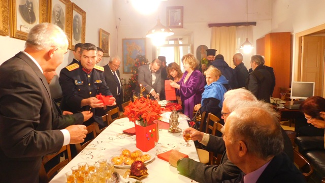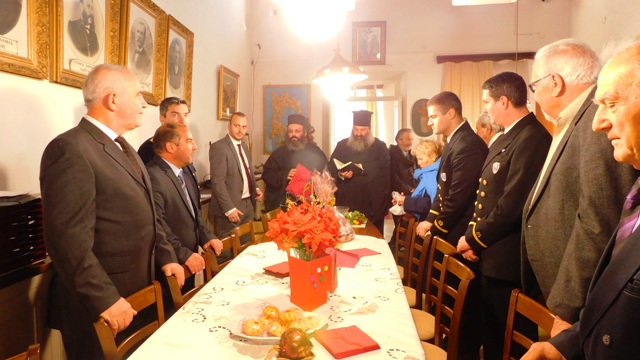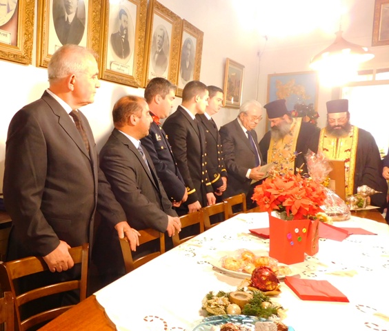 Στη συνέχεια όλοι μαζί με τη συνοδεία του δημάρχου, μετέβησαν στο δημαρχείο όπου μετά τον αγιασμό που έγινε για το νέο έτος, 2023 από οτν εκκλησιάρχη ιεροπόναχο Θωμά και τον ιερομόναχο Βαρθολομαίο πραγματοποιήθηκε η κοπή της πρωτοχρονιάτικης πίτας , με κερδισμένο και τυχερό της ημέρας τον Γιάννη Τσαμπαλάκη. Ψάλτες Μανώλης Δ. Γρύλλης και Ματθαίος Μελιανός .