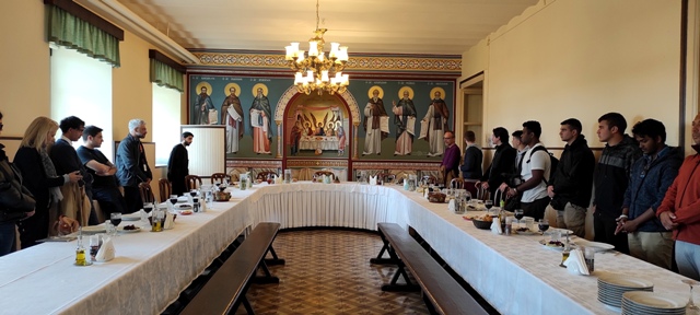 Στην Θεολογική Σχολή της Χάλκης μας προσκάλεσε ο Επίσκοπος Αραβισσού κ. Κασσιανός, Ηγούμενος της Χάλκης και απόφοιτος της Σχολής μας, ο οποίος μας υποδέχθηκε θερμά και μίλησε στους μαθητές για τα χρόνια κατά τα οποία φοίτησε στην Πατμιάδα. Ξεναγηθήκαμε στην ιστορική Σχολή και στην συνέχεια, παρατέθηκε γεύμα για όλους μας στην τραπεζαρία.