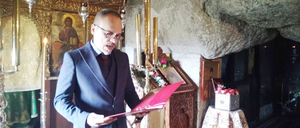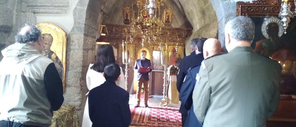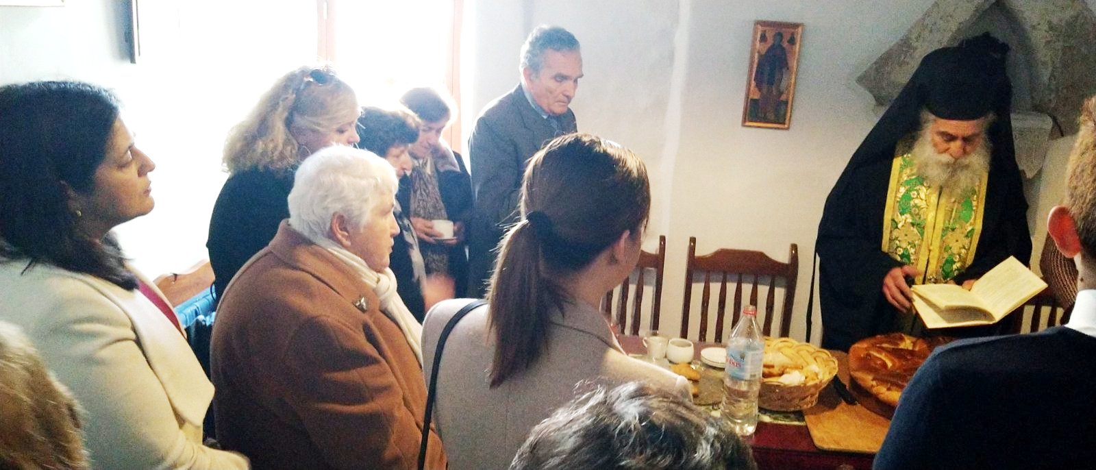 " Σ’ αυτόν εδώ τον ιερότατο τόπο προσευχής, τον μυστηριακά σφραγισμένο από το όραμα της Αποκαλύψεως, επέλεξε ο Μακάριος να ιδρύσει τη Σχολή του. Η Σχολή ονομάστηκε αρχικά «ένδον της Αποκαλύψεως Φροντιστήριον» και εν συνεχεία «Πατμιάς Εκκλησιαστική Σχολή». Η συγκλονιστική κατάνυξη την οποία εμπνέει ο χώρος σε συνδυασμό με την απομόνωση που προσέφερε, αποτέλεσαν ιδανική επιλογή για το όραμα του Μακαρίου" ανέφερε ο κ. Σχολάρχης μεταξύ άλλων στην ομιλία του.