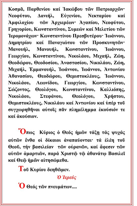Παρακάτω τα ονόματα των δωρητών και των ευεργετών όπως διαβάζονται στη ΔΕΗΣΗ του Ιεροδιακόνου.