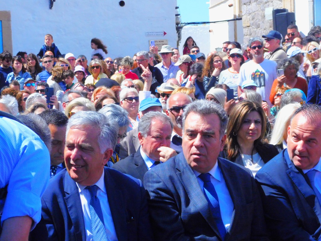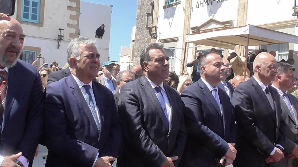 Παρέστη ο υπουργός Εθνικής Άμυνας κ. Νίκος Δένδιας, ο αρχηγός ΓΕΕΘΑ Στρατηγός Δημήτριος Χούπης , ο αρχηγός της ΑΣΔΕΝ Αντιστράτηγος Εμμανουήλ Θεοδώρου , ο υφ. Εμπορικής Ναυτιλίας και νησιωτικής πολιτικής Γιάννης Παππάς, ο Αναπληρωτής Περιφερειάρχης Νοτίου Αιγαίου, Αποστόλης Ασπράκης, ο δήμαρχος Καλύμνου Γιάννης Μαστροκούκος , οι βουλευτές Δωδεκανήσου κ. Γιώργος Νικητιάδης, Βασίλης Υψηλάντης, Μάνος Κόνσολας, οι πολιτευτές κ. Αντώνης Γιαννικουρής, Κατερίνα Εμμανουήλ και η υποψήφια ευρωβουλευτής κ, Μαρία Μιχελή. Παρέστησαν επίσης πολλοί φίλοι της Πάτμου μεταξύ αυτών ο κ. και η κα Γερουλάνου, ο Βιρτζίλιο Άβατο, o κ. Άριστογείτων Χαραλαμπάκης κ.ά.
