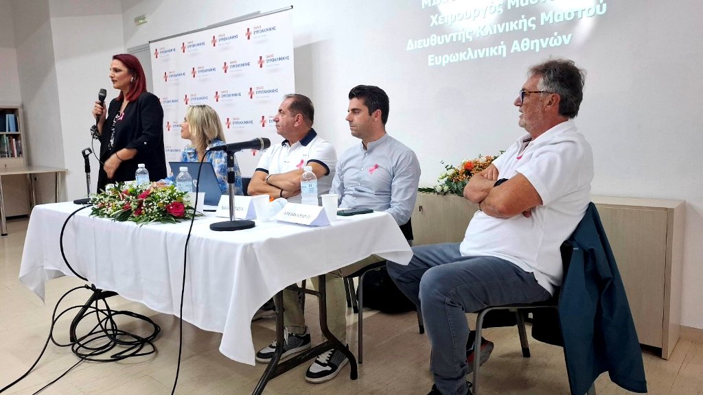 Μία εξαιρετική και σημαντική ημερίδα παρακολουθήσαμε την Παρασκευή 11 Οκτωβρίου στο ΠΑΤΜΙΟΝ " ΕΝΗΜΕΡΩΣΗΣ & ΠΡΟΛΗΨΗΣ ΓΙΑ ΤΟΝ ΚΑΡΚΙΝΟ ΤΟΥ ΜΑΣΤΟΥ", από την ομάδα της Ευρωκλινικής Μαυρουδή Μιχάλη ΔΙΕΥΘΥΝΤΗ ΧΕΙΡΟΥΡΓΙΚΗΣ ΚΛΙΝΙΚΗΣ ΜΑΣΤΟΥ Χειρουργό Μαστού με θέμα ΠΡΟΛΗΨΗ ΚΑΙ ΕΓΚΑΙΡΗ ΔΙΑΓΝΩΣΗ ΤΟΥ ΚΑΡΚΙΝΟΥ ΤΟΥ ΜΑΣΤΟΥ, τον Χειρουργό Μαστού Μητρούσια Απόστολο με θέμα ΝΕΟΤΕΡΑ ΔΕΔΟΜΕΝΑ ΘΕΡΑΠΕΙΑΣ ΣΤΗΝ ΑΝΤΙΜΕΤΩΠΙΣΗ ΤΟΥ ΚΑΡΚΙΝΟΥ ΤΟΥ ΜΑΣΤΟΥ τον κ. Μαλακάση Πέτρο Ακτινοδιαγνώστη και την ενδοκρινολόγο κα Τσιρώνα Σ. διευθύντρια του ενδοκρινολογικού τμήματος με θέμα "Προεμηνόπαυση - εμμηνόπαυση και τρόποι αντιμετώπισης" .