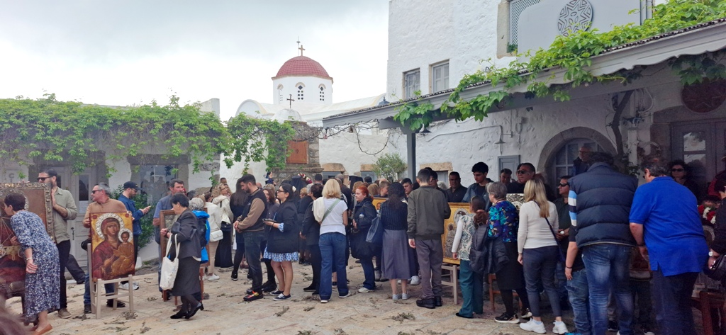 Την Τρίτη της Διακαινησίμου 22 Απριλίου 2025, τελείται η περιφορά των εικόνων στα σπίτια της κάθε ενορίας, στις ενορίες των οικισμών, ένα έθιμο παλιάς λατρευτικής παράδοσης στην Πάτμο. Της περιφοράς προηγείται αγιασμός
