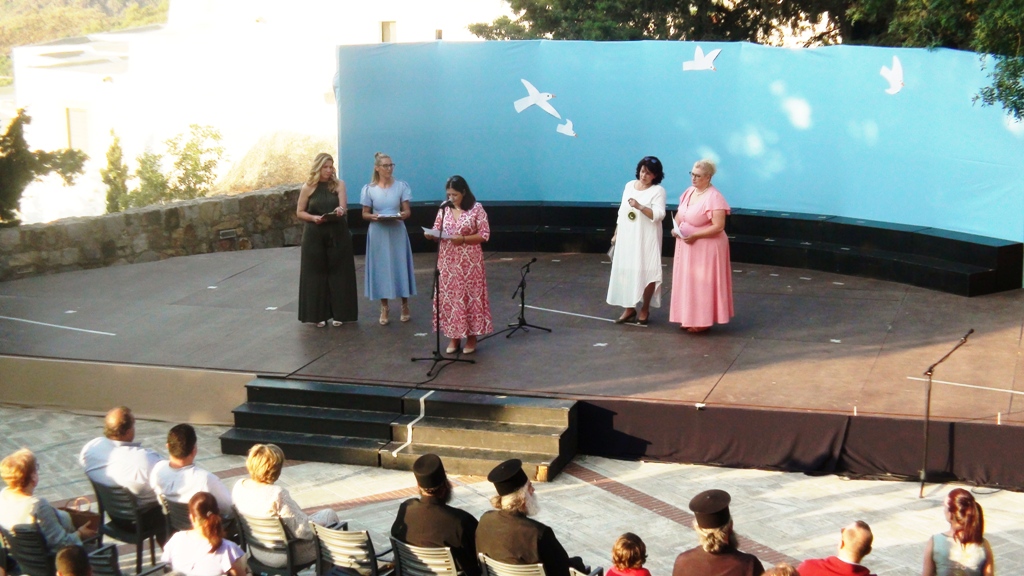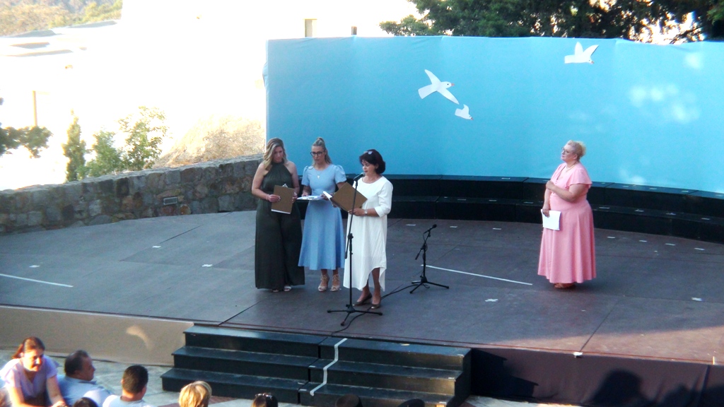 Κατερίνα Καμίτση, Ειρήνη Μελιανού, Μαρία Καρίκα, Ισιδώρα Χριστοφορίδου. Χαιρετισμό απηύθυναν η αντιδήμαρχος πολιτισμού κ. Αργυρώ Γιαμαίου και η συγγρφέας του βιβλίου Η ΠΑΤΜΟΣ ΕΙΜΑΙ που ενέπνευσε τη γιορτή κ. Πηγή Γρύλλη.