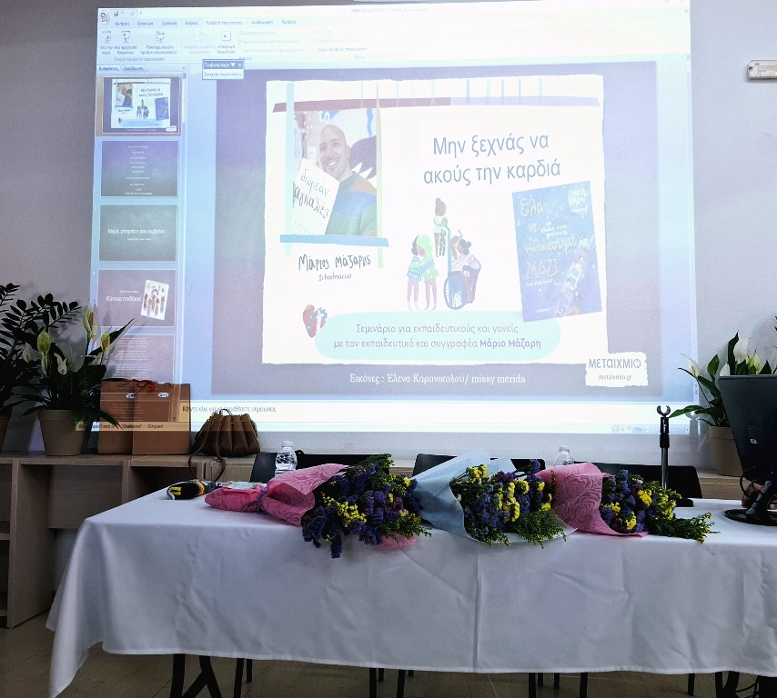 Οι ομιλητές Φρόσω Φωτεινάκη ψυχολόγος - συγγραφέας και ο Μάριος Μάζαρης δάσκαλος - συγγραφέας, με πολύ γλαφυρό, κατανοητό και τρυφερό λόγο έθεσαν θέματα για το πως ένα παιδί και οι γονείς, κατά την άποψη τους πάντα, μπορούν να περπατήσουν πλάι-πλάι στα πρώτα χρόνια της ζωής τους ώστε στην εφηβία να είναι αρμονική η σχέση τους. Και το έκαναν με ιστορίες αγκαλιάς, ερωτημάτων, στοχασμού και τρυφερότητας με κύριο μότο να ακούν την καρδιά τους παιδιού τους .