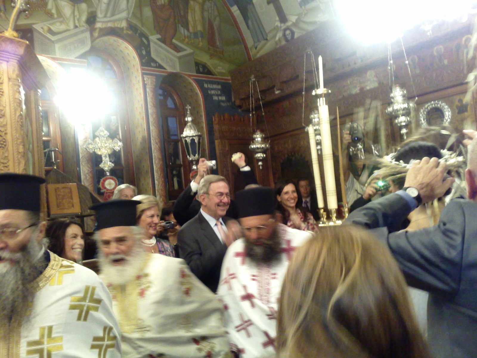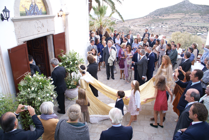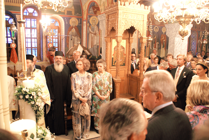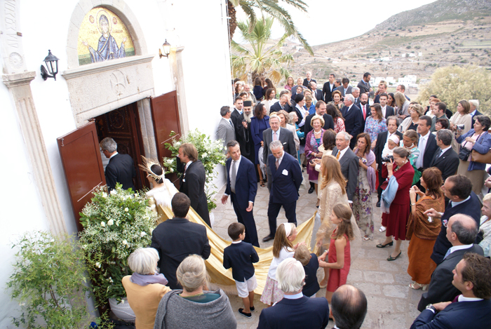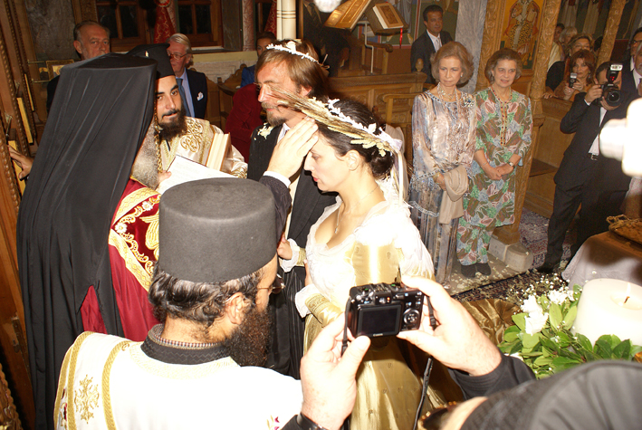 Το μυστήριο τελέστηκε στον Ιερό Ναό της Αγίας Διασώζουσας στη Χώρα από τον καθηγούμενο Πάτμου αρχιμ. Αντίπα και η δεξίωση στο παλιό Δημοτικό σχολείο Χώρας. Προσκεκλημένοι 70 άτομα, βασιλιάδες, πρίγκιπες και γαλαζοαίματοι. Μεταξύ αυτών η βασίλισσα της Ισπανίας Σοφία και οι τέως βασιλείς Κωνσταντίνος και Άννα Μαρία. Η βασίλισσα Σοφία της Ισπανίας ήρθε στην Πάτμο το πρωί του Σαββάτου 27 Σεπτεμβρίου με ελικόπτερο και φιλοξενήθηκε στο σπίτι του Σαντρουντίν Αγά Χαν. Στην Πάτμο ήταν επίσης από την Παρασκευή ο τέως βασιλεύς Κωνσταντίνος με την Άννα Μαρία, φιλοξενήθηκαν στο σπίτι του Αμίν Αγά Χαν και η πριγκίπισσα Ειρήνη, φιλοξενήθηκε στο σπίτι του καθηγητή και ιστορικού συγγραφέα Κώστα Σταματόπουλου. Στο γάμο τηρήθηκαν πολλά από τα πατροπαράδοτα έθιμα του νησιού μας, όπως :