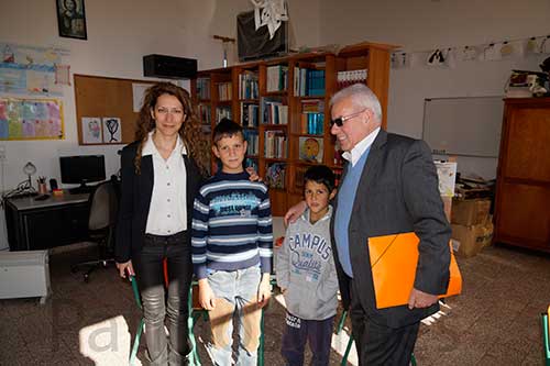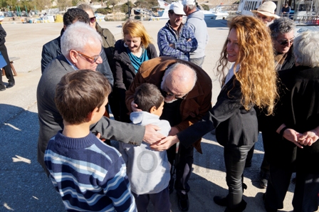 Συγκινητική στιγμή ήταν η συνάντηση του υπουργού , υφυπουργού, βουλευτών και συνοδών με τη δασκάλα και τον μοναδικό μαθητή του δημοτικού σχολείου των Αρκιών τον οποίο αγκάλιασε ο υπουργός δίνοντας του δώρα όπως και στον μεγαλύτερο αδελφό του, που έχει ξεσχολίσει , μπάλες ποδοσφαίρου και μπάσκετ, βιβλία και οι βουλευτές σοκολάτες, ενώ ο αρχηγός του Λιμενικού Σώματος-Ελληνικής ακτοφυλακής κ. Σταμάτης Ράπτης απένειμε στη δασκάλα γκραβούρα του λιμενικού σώματος.