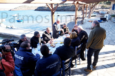 Τέλος πριν αναχωρήσει το υπουργικο κλιμάκιο για Κω με το πλωτό του λιμενικού που τους περίμενε, ο Δήμος Πάτμου τους παρέθεσε γεύμα. Το πρωί της επομένης επισκέφθηκαν την Ψέριμο.