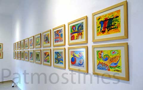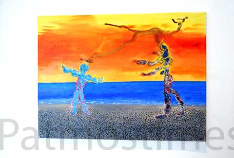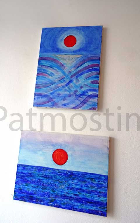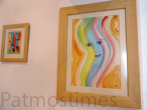 Η ζωγράφος που είναι και σοπράνο παρουσίασε έργα με φως και χρώμα από τη ζωή της στην Πάτμο, δουλεμένα με ακρυλικό και υδατόχρωμα. Πολλά από αυτά εμπλουτίζει με υλικά όπως χαρτί και πανί.