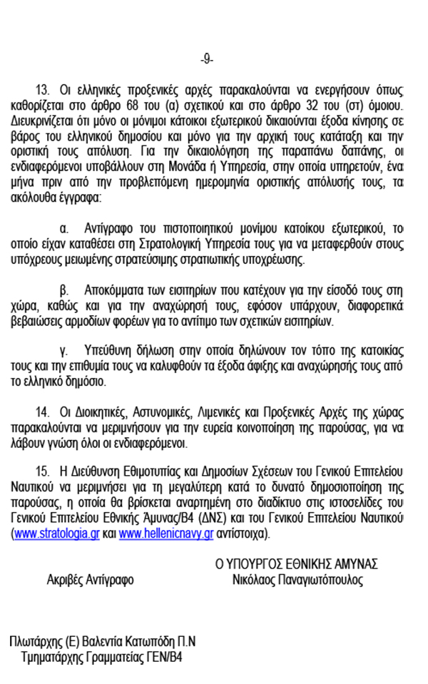 14. Οι Διοικητικές, Αστυνομικές, Λιμενικές και Προξενικές Αρχές της χώρας παρακαλούνται να μεριμνήσουν για την ευρεία κοινοποίηση της παρούσας, για να λάβουν γνώση όλοι οι ενδιαφερόμενοι.