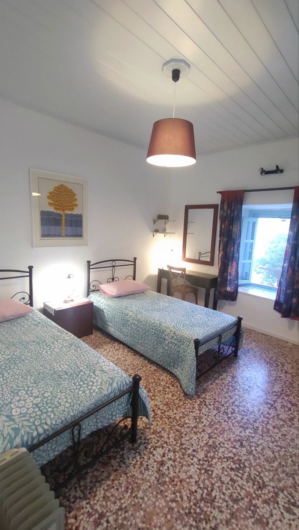 Ο χώρος του υπνοδωματίου, διαθέτει δύο μονά κρεβάτια τα οποία ενώνονται.