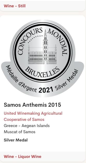Με δύο ακόμη ΒΡΑΒΕΙΑ τιμήθηκαν τα εκλεκτά κρασιά του ΕΟΣ Σάμου, στον εγνωσμένου κύρους διεθνή διαγωνισμό «Concourse Mondial de Bruxelles» 2021.