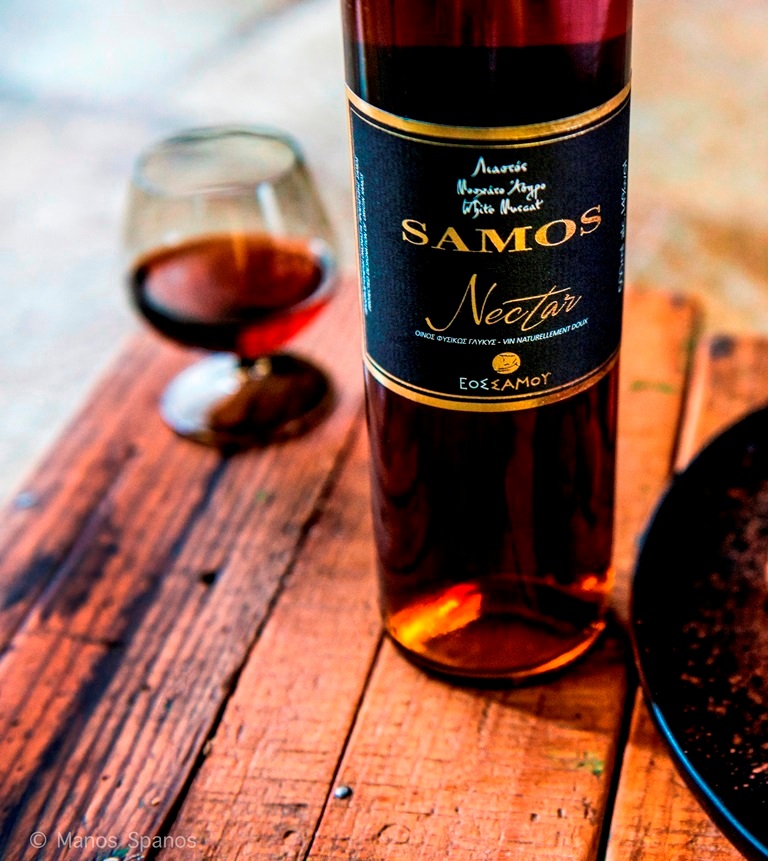 Το Samos Nectar (2014) είναι ίσως το πιο ιστορικό κρασί του ΕΟΣ Σάμου κι ένα από τα καλύτερα στον κόσμο. Παράγεται από υπερώριμο, λιαστό σταφύλι, που παλαιώνει για έξι χρόνια σε δρύινα βαρέλια. Το χρώμα του είναι βαθύ κεχριμπαρένιο, με όμορφες πορτοκαλί ανταύγειες. Στη μύτη επικρατούν αρώματα σταφίδας, αποξηραμένων φρούτων, μελιού και ξηρών καρπών. Καλή οξύτητα και μεγάλη επίγευση, με ιδιαίτερες νότες καπνού και αμυγδαλωτών.