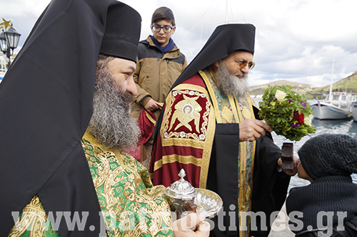 Παρά το έντονο κρύο οι συμπατριώτες μας τίμησαν με την παρουσία τους τα Θεοφάνεια αλλά και για πρώτη φορά 14 νέοι μεταξύ αυτών και μία κοπέλα η Ειρήνη Μελιανού έπεσαν να πιάσουν τον σταυρό στα παγωμένα νερά του λιμανιού. Τον Σταυρό έριξε ο καθηγούμενος αρχιμ. Κύριλλος Πέντες και τον συνόδευσαν τα δύο λευκά περιστέρια τα οποία άφησε να πετάξουν ο αντιδήμαρχος κ. Γιάγκος Σημαντήρης που είχε σε κλουβί, ενώ σφύριζαν τα σκάφη του λιμανιού.