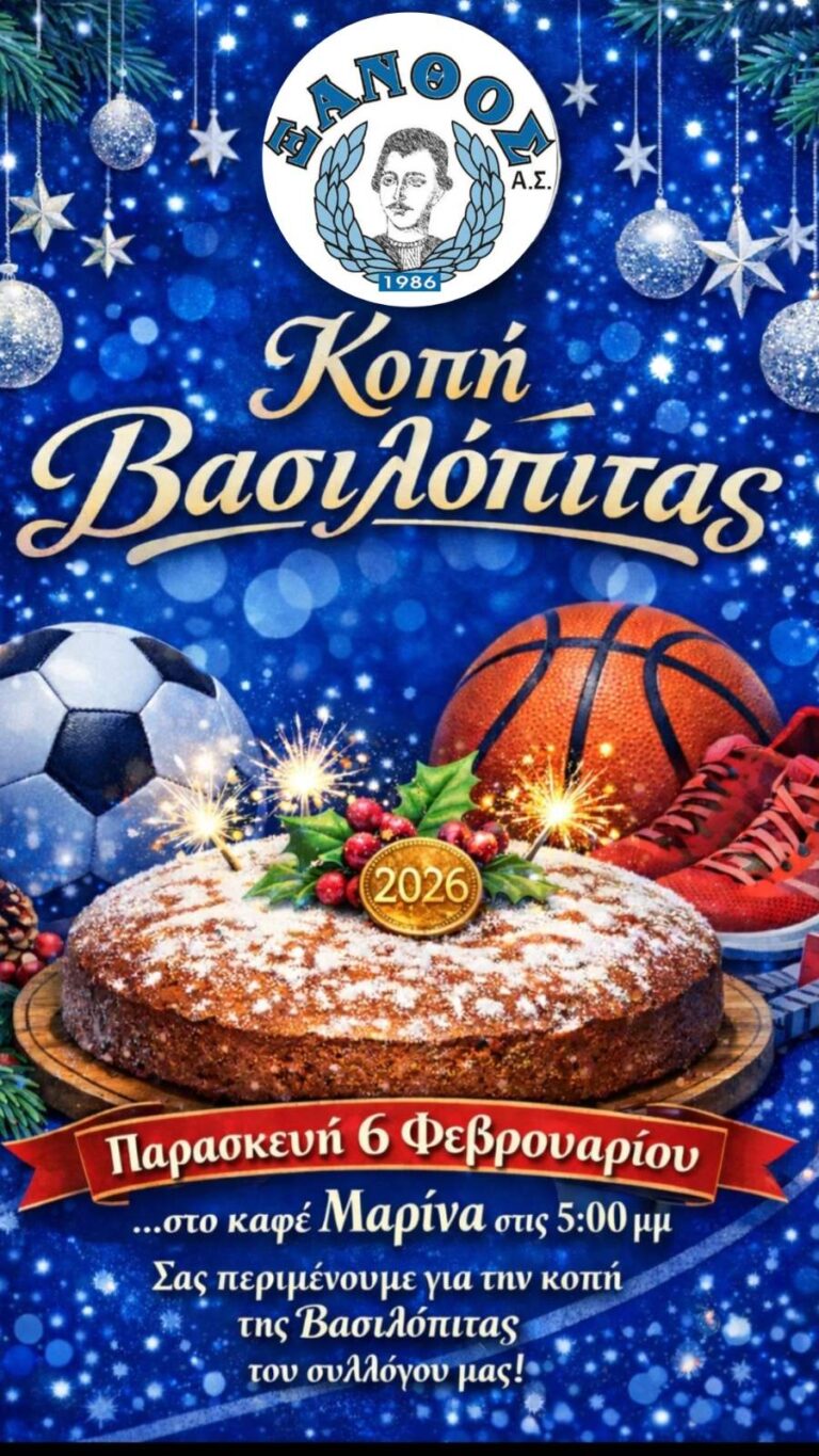 Ο Α.Σ. ΞΑΝΘΟΣ κόβει την βασιλόπιτα 06 Φεβρουαρίου 2026 12:04 / HIGH LIGHTS, Επικαιρότητα / Από Πατμιακά Χρονικά Κοινοποιήστε: