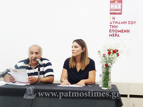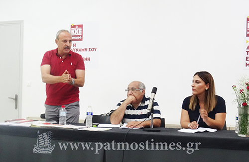 Η KΟΜΜΑΤΙΚΗ ΟΡΓΑΝΩΣΗΣ ΒΑΣΗΣ ΠΑΤΜΟΥ (ΚΟΒ) TOY K. Κ. Ε. οργάνωσε την Παρασκευή 28 Ιουνίου, στις 20.30, στο Πάτμιον ομιλία-συζήτηση, με ομιλητές τους υποψήφιους βουλευτές του ΚΚΕ στο νομό Δωδεκανήσου Δέσποινα Γουρλά και Στέλιο Κριαρά.