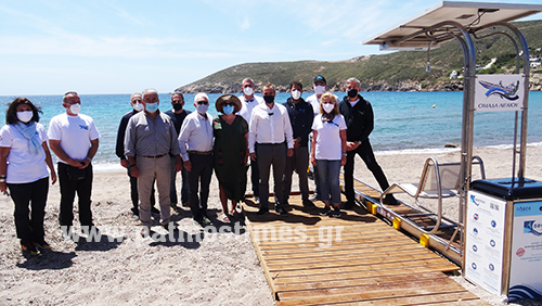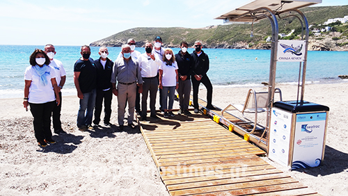 Τοποθετήθηκε αμαξίδιο θαλάσσης για ΑΜΕΑ στην παραλία του Κάμπου από την ομάδα Αιγαίου που βρίσκεται από χθες στο νησί μας.
