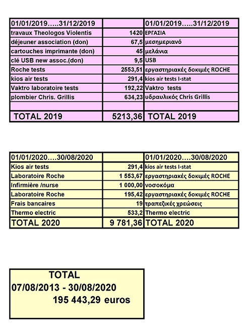 Η κ. Fonsale ευχαρίστησε και κείνη το νέο Δ.Σ. και τους δωρητές, έκανε οικονομικό απολογισμό του τελευταίου χρόνου και που διατέθηκαν τα χρήματα και αναφορά στις δράσεις του . Ανέφερε ότι τα χρήματα που υπάρχουν στο ταμείο, είναι 16.000 ευρώ και θα αφιερωθούν κυρίως για την πληρωμή αντιδραστηρίων από το εργαστήριο και για τεστ Covid…