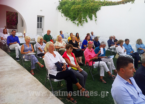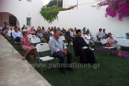Επίσης παρέστησαν o π. Σεραφείμ Κοτσάνης ως εκπρόσωπος του Αγίου Καθηγουμένου, η δημοτική σύμβουλος κ. Ελένη Μαυρογάλου ,  ο πρόεδρος της τριμελούς επιτροπής του Κ.Υ. Πάτμου κ. Αντώνης Γαμπιέρης κ.ά.