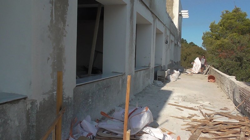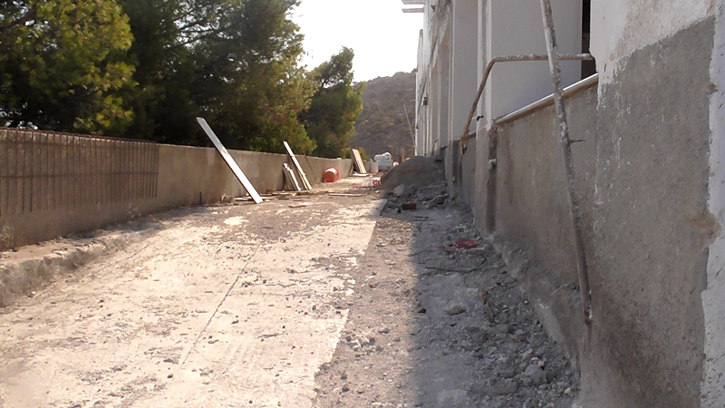 Φροντίσαμε να πάμε ενωρίτερα στο χώρο εκτέλεσης των εργασιών και διαπιστώσαμε ότι μαθητές και εκπαιδευτικοί είναι ήρωες κάνοντας μάθημα κάτω από αυτές τις αντίξοες συνθήκες που κατέγραψε η κάμερα της εφημερίδας ΠΑΤΜΙΑΚΑ ΧΡΟΝΙΚΑ και της τηλεόρασης ΚΟΣΜΟΣ, και επισκεπτόμενοι τα 2 από τα τρία διαζώματα στα οποία γινόταν οι εργασίες από 3 άτομα, άντε 4 αν μετρήσαμε καλά και θεωρείται βέβαιο ότι με το ρυθμό εκτέλεσης των εργασιών, θα είναι ευτύχημα να επανέλθει στην προτεραία κατάσταση του το κτήριο στα επόμενα 30 χρόνια. Τι ; πολλά είπα ;; Κάντε μια βόλτα και θα διαπιστώσετε του λόγου το αληθές !!!!