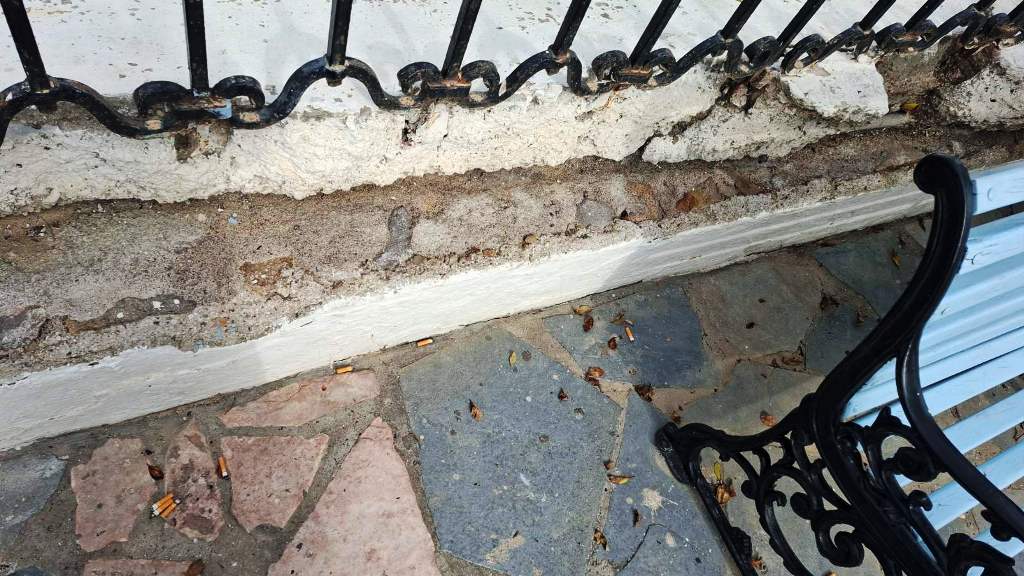 Στη φάτσα του λιμανιού τα κάγκελα που περιβάλλουν τον εξωτερικό του χώρο είναι έτοιμα να πέσουνε. Κουνιούνται. Πριν τα φτιάξουνε ας μπει τουλάχιστον μία προειδοποίηση για να μη συμβεί το κακό.
